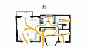 Imagine que le Chi est comme un courant d’air doux ou comme l’eau claire d’un ruisseau. Il entre par la porte principale (et aussi par les fenêtres), serpente dans les pièces, caresse les meubles, puis ressort par les ouvertures vers l’extérieur.