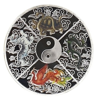 L’Amulette argentée Bagua 4 Animaux Célestes, symbole de protection et d’équilibre des énergies dans tous les lieux de vie.