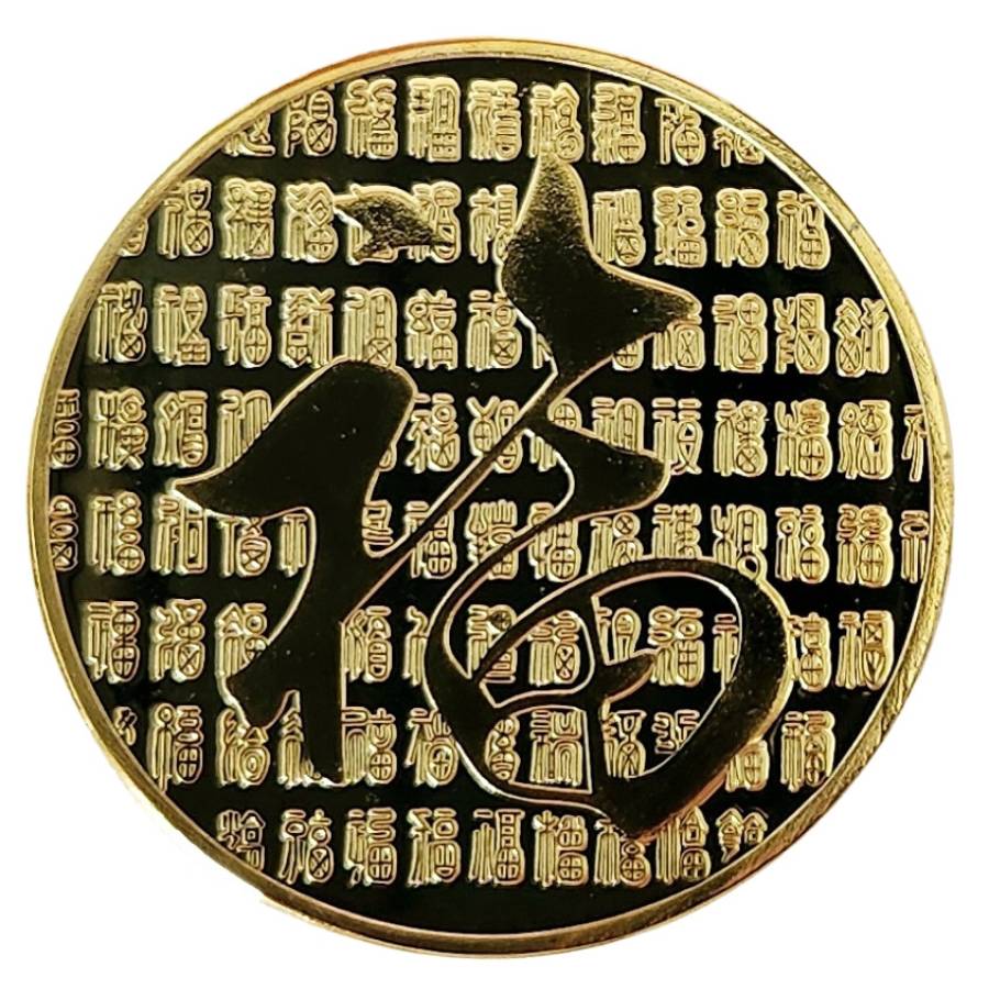 Au dos de l’amulette apparaît une calligraphie traditionnelle entourée du caractère 福 (Fu), symbole de bonheur et de bénédiction.