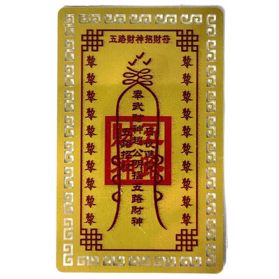“Talisman d’attraction de richesse des Cinq Dieux de la Richesse”.
