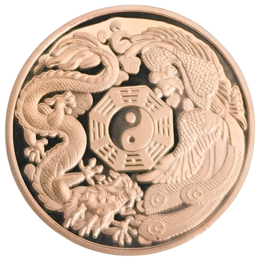 ☯️ Amulette Yin Yang dorée et Dragon, Phénix Feng Shui : équilibre et complémentarité