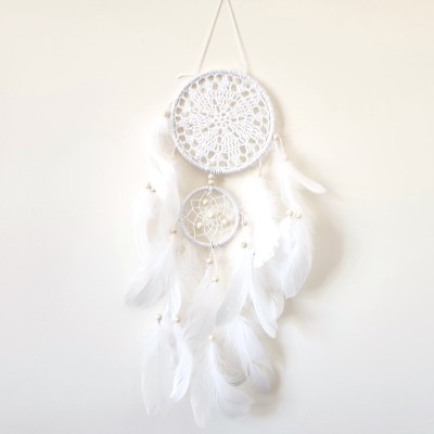 L’Attrape Rêves Doubles Capteurs Corde blanche Feng Shui, objet déco idéal pour lutter contre les mauvaises nuits.