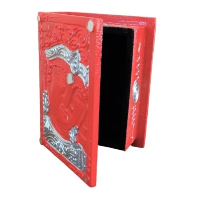 La Boîte Bouddha rouge et argent 15cm Feng Shui, symbole de protection,de compassion, de joie et d’équilibre spirituel.