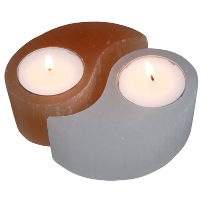 Bougeoir Yin Yang, Cristal de Sel et Sélénite