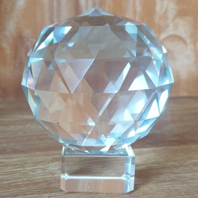 La boule de cristal à facettes mesure 80mm de largeur.