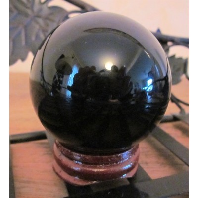 La boule d’Obsidienne noire mesure 50mm de diamètre.