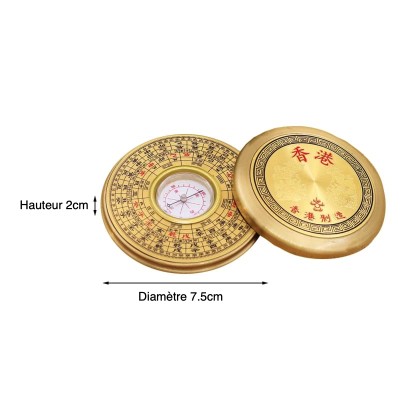 La boussole Luo Pan Feng Shui mesure 7.5cm de diamètre.