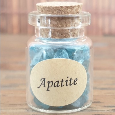La Bouteille en Pierres roulées d’Apatite, purificateur d’énergies aux vertus protectrices.