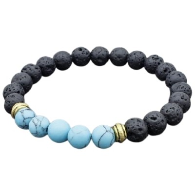 Le bracelet se compose de pierres de lave et de pierres de turquoise.