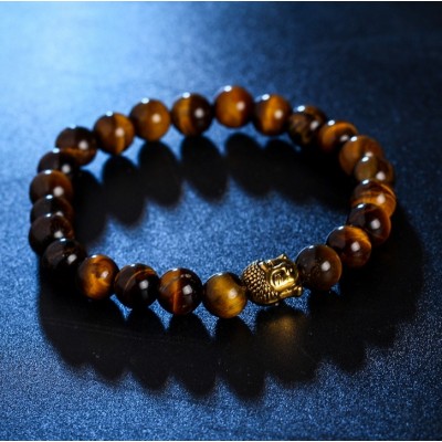 Le Bracelet Bouddha Thaï doré en Oeil de tigre marron Feng Shui, symbole de soutien et d’équilibre, aide à surmonter les situations difficiles.