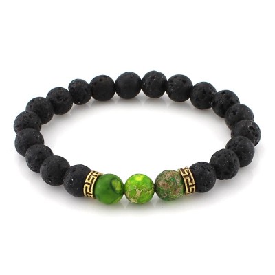 Le Bracelet doré Pierres de Lave et Pierres vertes Feng Shui, aide au bien être et au bon équilibre des énergies du corps humain.