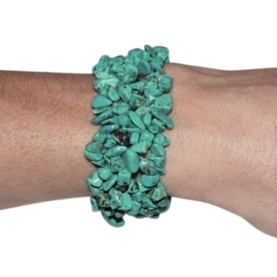Ce beau bijou fantaisie vous aidera à vous sentir bien tout au long de la journée grâce aux nombreux pouvoirs de la pierre de Turquoise. Ce bracelet fantaisie Feng Shui vous apportera protection et équilibre tout au long de la journée. Agréable à porter, en hiver comme en été, à même la peau ou sur un vêtement, ce bijou fantaisie en pierre semi précieuse fera son effet en toute circonstance.