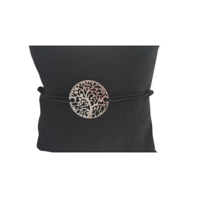 Le Bracelet noir Arbre de Vie argenté Feng Shui, aide au bien être et au bon équilibre des énergies du corps humain.