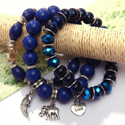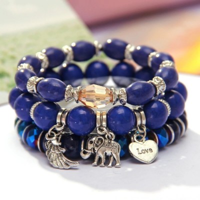 Le Bracelet Perles Marbrées bleues Eléphant Protecteur Feng Shui, symbole de protection, de puissance et de grande stabilité professionnelle.