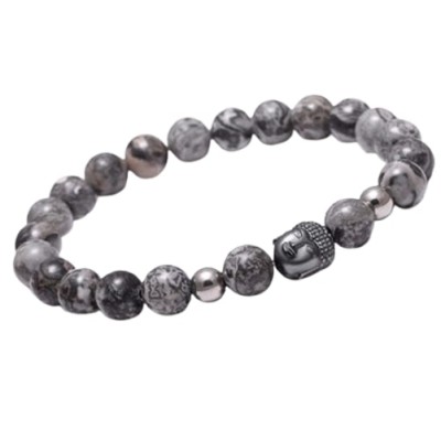 Le Bracelet Tête de Bouddha en Jaspe gris Feng Shui, symbole de soutien et d’équilibre, aide à surmonter les situations difficiles.