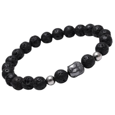 Le Bracelet Tête de Bouddha en Pierre de Lave Feng Shui, symbole de soutien et d’équilibre, aide à surmonter les situations difficiles.