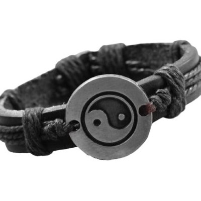 Le Bracelet Yin Yang en cuir noir Feng Shui, amulette de protection, puissant symbole Feng Shui.