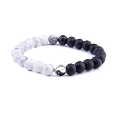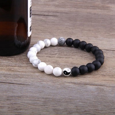 Le Bracelet Yin Yang Howlite et Onyx noir mat Feng Shui, aide au bien être et au bon équilibre des énergies du corps humain.