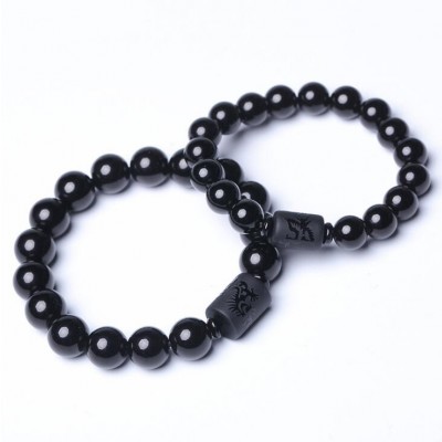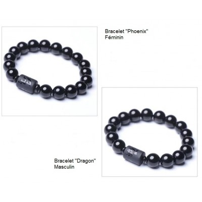 Les Bracelets Couple Dragon et Phoénix en Obsidienne noire Feng Shui, aide au bien être et au bon équilibre des énergies du corps humain.