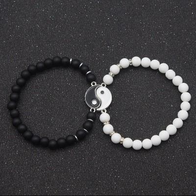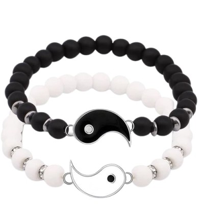 Les Bracelets pour Couple Yin Yang Onyx noir et blanc mat Feng Shui, aide au bien être et au bon équilibre des énergies du corps humain.