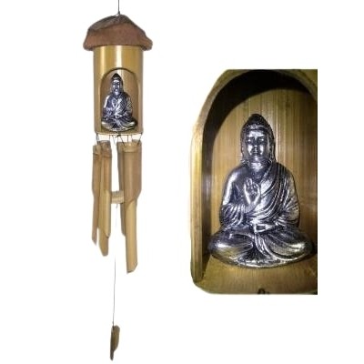 Le Carillon Bambou Bouddha Thaï argenté 6 Branches Feng Shui, idéal pour purifier et faire circuler correctement toutes les énergies grâce à sa mélodie harmonieuse.