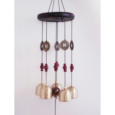 Le carillon de la prospérité à 5 clochettes en métal est un instrument important en Feng Shui qui permet d’activer l’énergie métal des secteurs Ouest et Nord-ouest mais il permet également de purifier et de faire circuler correctement le Chi dans toute la maison ou le bureau.