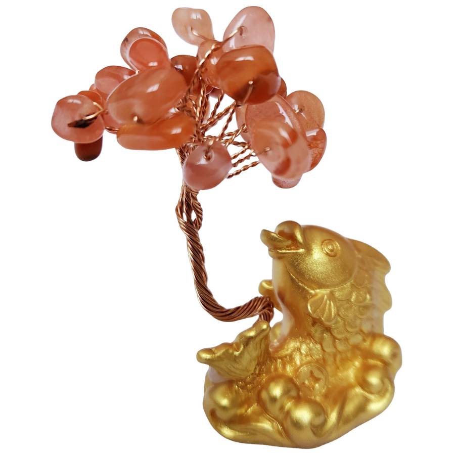 La Carpe Koï et Arbre en Agate Cornaline associe deux symboles puissants du Feng Shui.