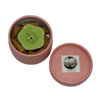 Le coffret comprend 1 soucoupe brûle encens en céramique et 30 encens cônes senteur jasmin.