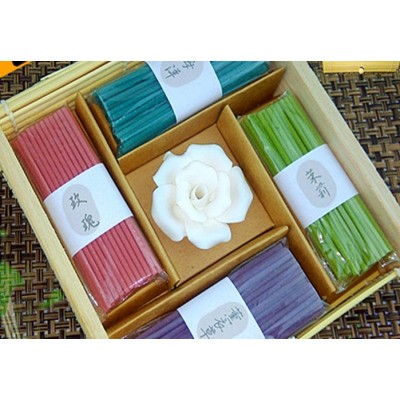Le coffret comprend un brûle encens Fleur de lotus en céramique et 4 sachets d’encens batons, senteurs rose, lavande, jasmin et océan.