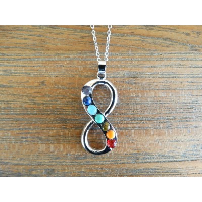 Le Collier Pendentif 8 de l’Infini des 7 Chakras Feng Shui, aide au bien être et au bon équilibre des énergies du corps humain.