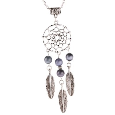 Le Collier Pendentif Attrape Rêves Perles noires Feng Shui, symbole de protection et d’équilibre.