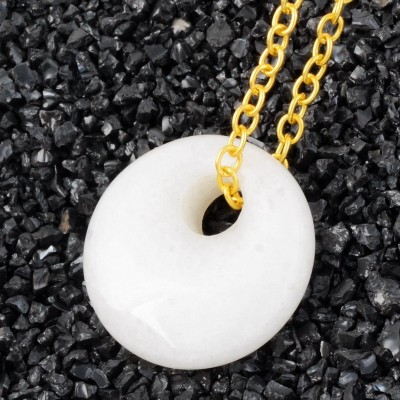 Le Collier Pendentif Donut en Jade blanc Feng Shui, symbole de pureté, de détente et de sérénité.