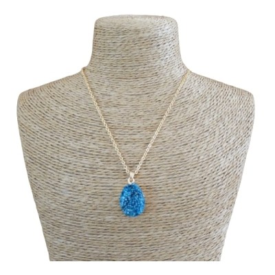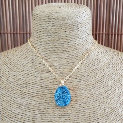Le Collier Pendentif Géode en Agate bleue Feng Shui, symbole de courage, de confiance et de protection.
