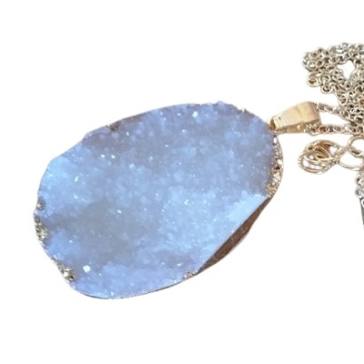 Le Collier Pendentif Grande Géode en Agate blanche Feng Shui, symbole de courage, de confiance et de protection.