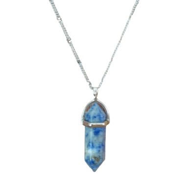 Le Collier Pendentif Prisme Chakra en Sodalite Feng Shui, aide au bien être et au bon équilibre des énergies du corps humain.