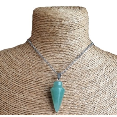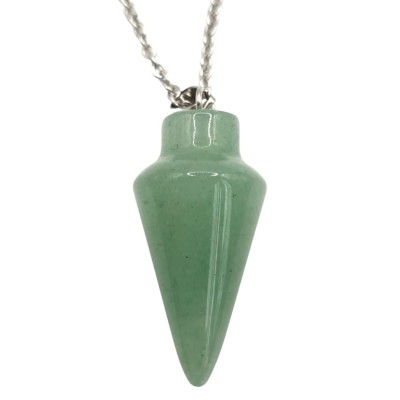 Le Collier Pendule en Aventurine verte Feng Shui, véritable porte bonheur et purificateur d’énergies, symbole de grande connaissances, de calme et de sérénité.