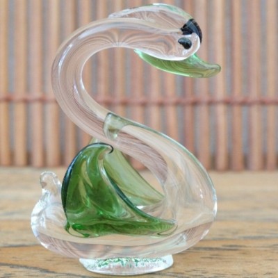 Le Cygne en Cristal vert et blanc Feng Shui, symbole de paix, de pureté éternelle et d’épanouissement sentimental.