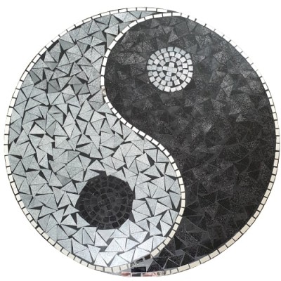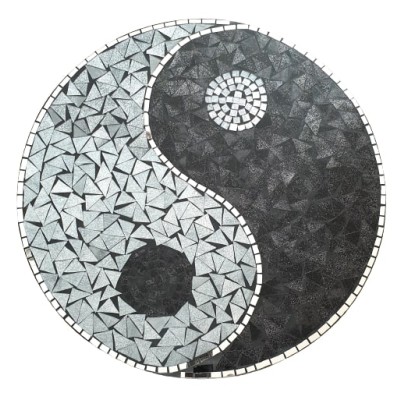 Le symbole yin yang est composé de mosaïque noire et argenté (pas miroir).
