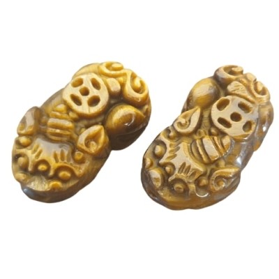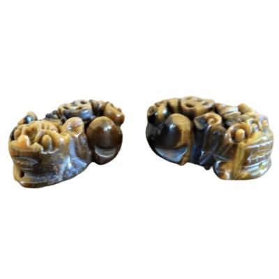 Les Doubles Pi Yao en Oeil de Tigre marron Feng shui, symbole de protection céleste et d’équilibre émotionnel et spirituel.