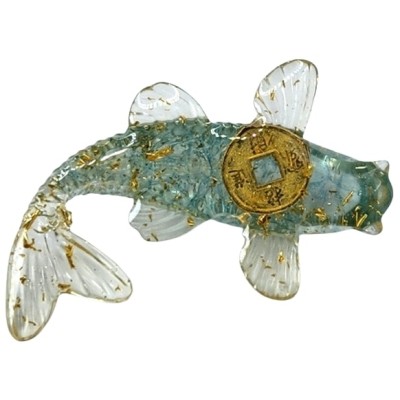 La Figurine Poisson Carpe bleu Feng Shui, représente la force, la persévérance et la virilité.