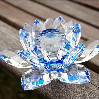 La Fleur de Lotus en Cristal bleu Feng Shui, symbole de paix, de pureté éternelle et d’épanouissement spirituel.