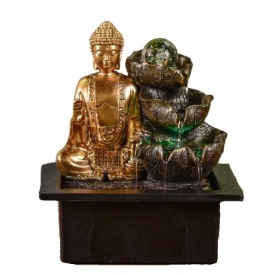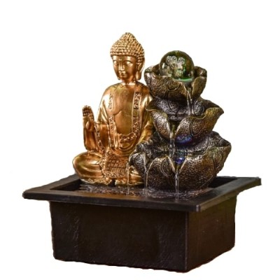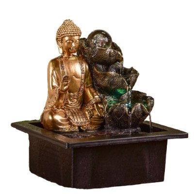 La Fontaine Lotus Bouddha doré Feng Shui, symbole de protection, d’équilibre spirituel et de soutien dans le domaine professionnel.