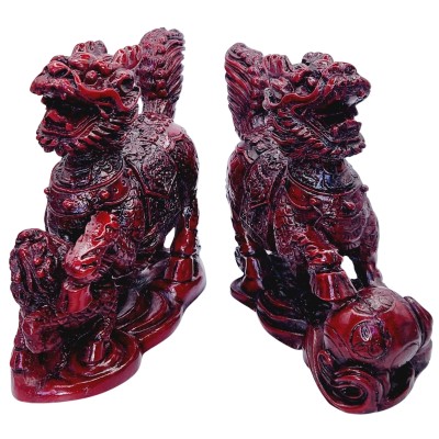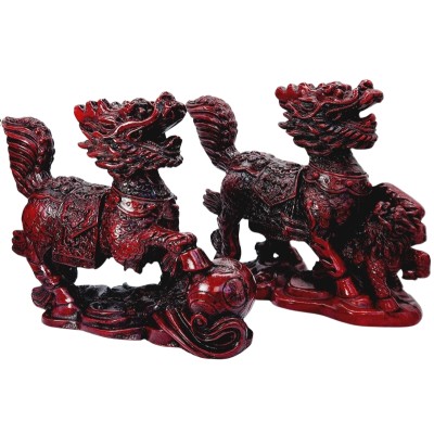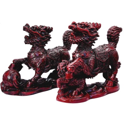 Les Grandes Statues Chi Lin rouges Feng Shui, purifient les mauvaises énergies entrant dans les habitations.
