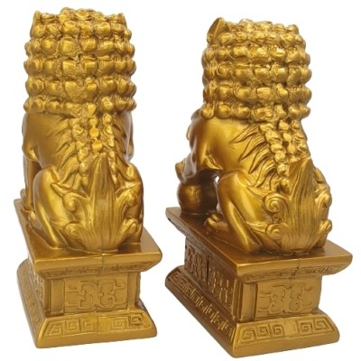 Les Grandes Statues Fu Dogs dorés Feng Shui, puissants gardiens et protecteur des lieux, symbole de respect et de fortune.