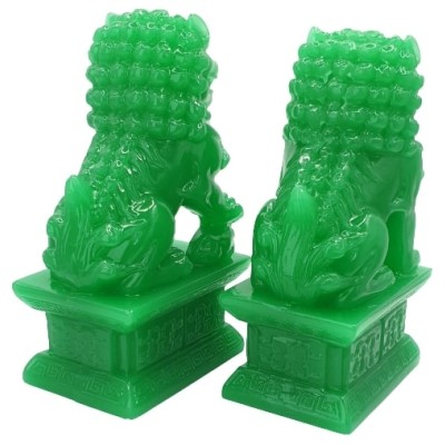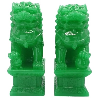 Les Grandes Statues Fu Dogs verts Feng Shui, puissants gardiens et protecteur des lieux, symbole de respect et de fortune.