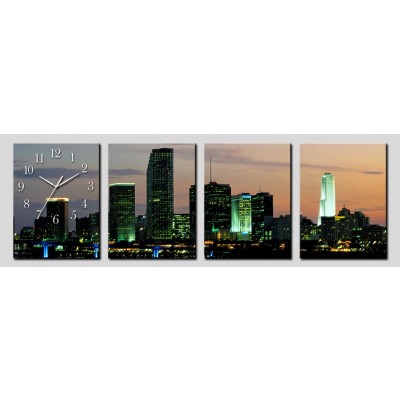 Ce tableau horloge quadriptyque est une impression sur toile représentant une belle vue des grattes ciel de New York la nuit.