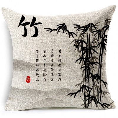 La Housse de Coussin Bambous Calligraphie Feng Shui, symbole de richesse, de santé et de longévité.
