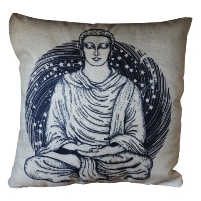 La Housse de Coussin Bouddha Illuminé bleu Feng Shui, grand symbole de soutien, de protection, de joie et d’équilibre spirituel.