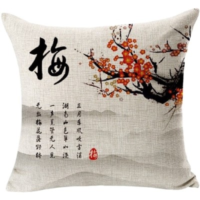 La Housse de Coussin Fleurs de Cerisier rouge Feng Shui, symbole de croissance, de renaissance et de prospérité.