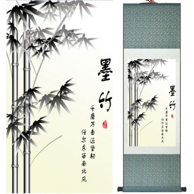 Le Kakemono Bambous et Calligraphie Feng Shui, tableau zen, symbole de richesse, de santé et de longévité.